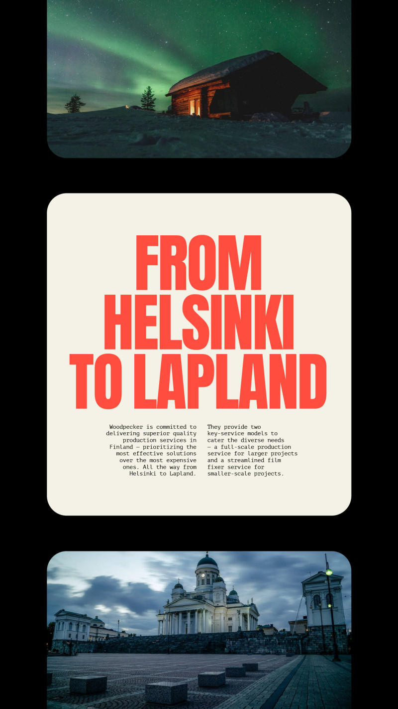 Since 1976, Woodpecker has been a cornerstone in Finlands film and advertising production. Through industry evolving, technologies advancing, and trends shifting — their dedication to production has remained unwavering.